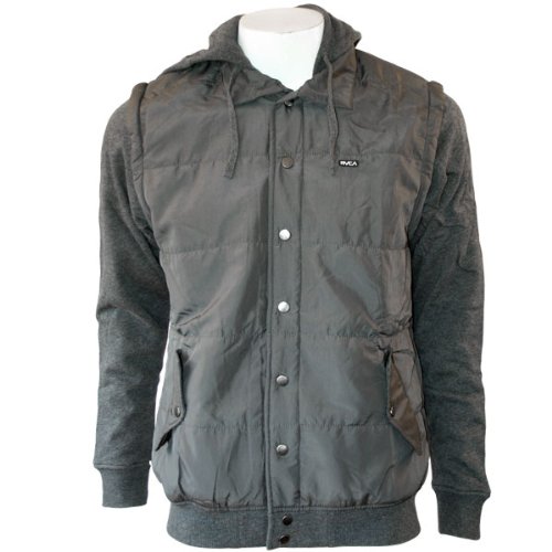 The outrageous feel of a puffer vest and comfy hoodie combine in this sleek ensemble from RVCA! It features embroidery on the hood and left chest, a nylon puff vest with sewn-in sleeves and hood and two front pockets so you can keep warm while looking cool.